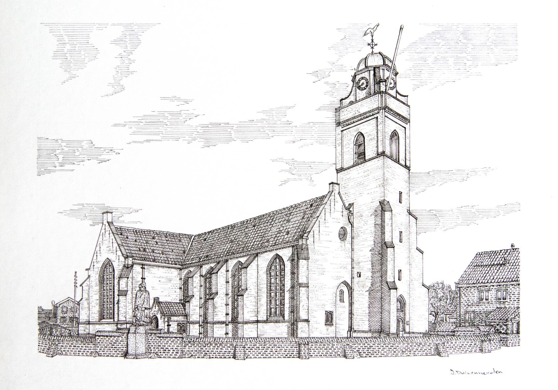 Laat u meevoeren door de klassieke sfeer van de pentekeningen van Jos Duivenvoorden. Elk kunstwerk is met precisie en toewijding vervaardigd.